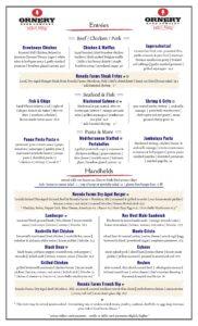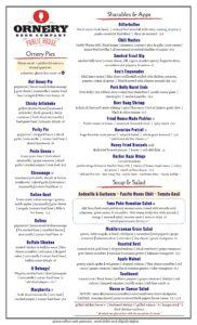 The Ornery Beery Company location is a full service restaurant – you can check out the menu for the Fairfax location below. It also offers a full bar and a beer menu that includes Ornery’s own brews.